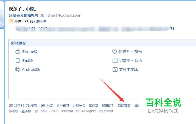 接下来我们就进入到QQ邮箱首页,在下方的选项里找到自助查询。