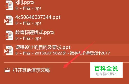 双击打开ppt软件,在打开页面,单击打开其他演示文稿。