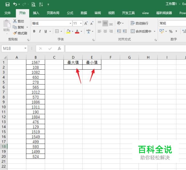 在B列中有一组数值,现在要找出这组数值的最大值和最小值分别填入到D2和E2单元格中