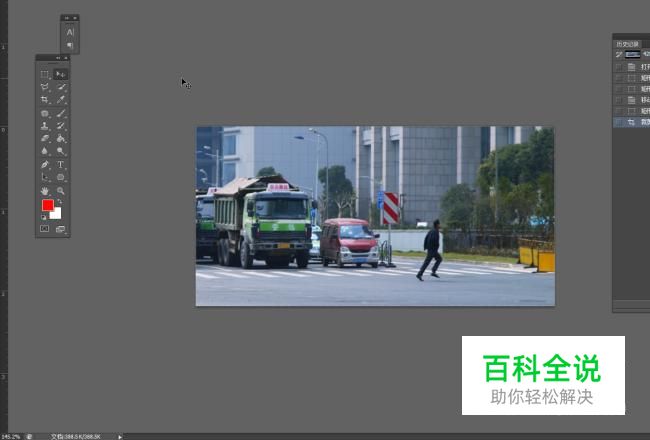我们这里使用快速选取工具,快速选取画面上的人。因为人的全身几乎纯黑,因此使用快速选取工具再合适不过…