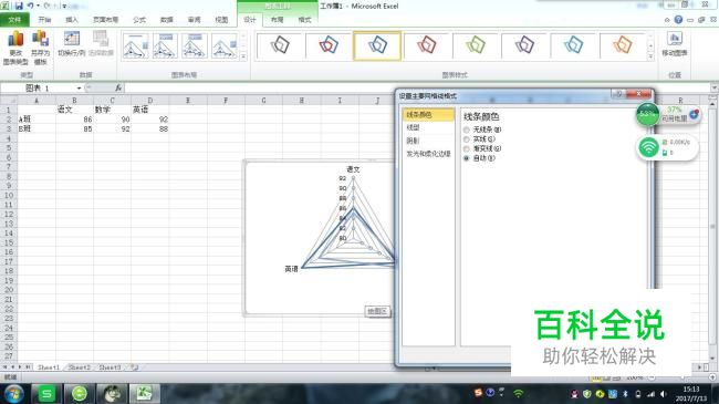 修饰雷达图。双击雷达图文字、数据,可在开始菜单中修改文字样式、字体大小等。双击雷达图还可设置坐标轴格式和设置主要网格线格式
