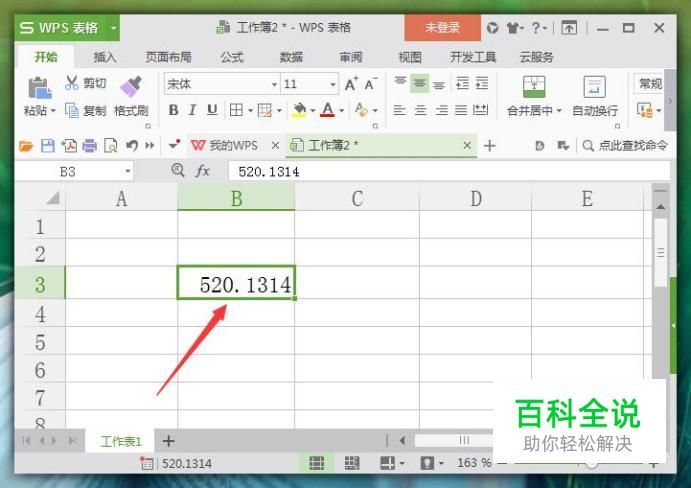 进入其主界面后,在单元格内输入数字“520.1314”为例,接下来进行修改小数位数操作,如图所示: