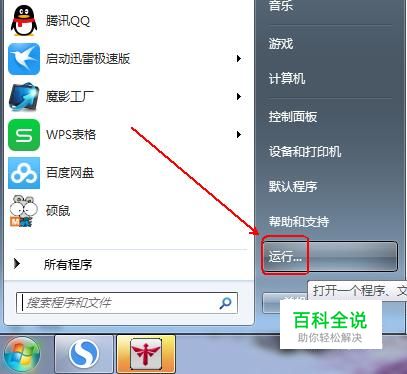 点击电脑桌面左下角的”win“图标在弹出的菜单列表中点选”运行”选项。