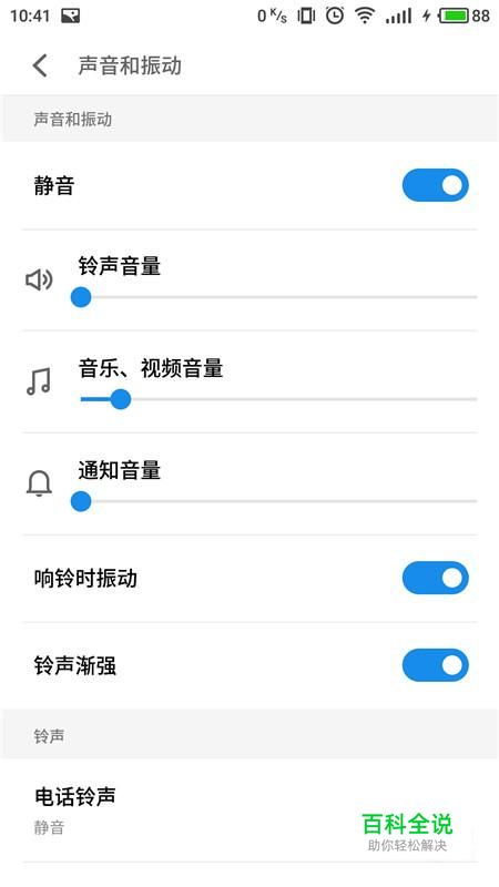 在音量设置中,“音乐、视频音量”即是控制通话和外放音量的选项,根据需求进行调整即可。