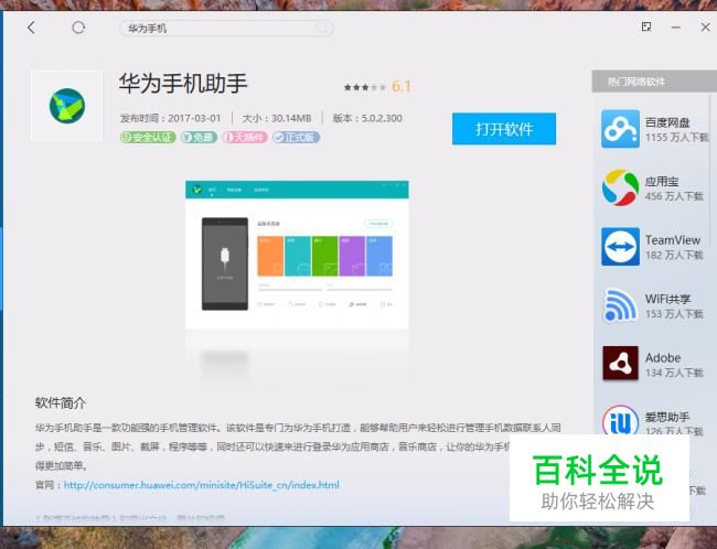 在电脑上下载安装一个手机助手。这里以我的华为手机为例。