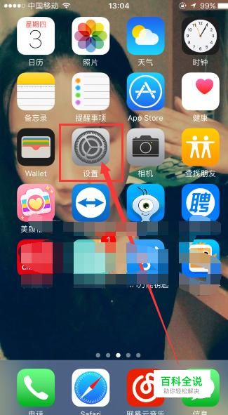 唤醒我们的iPhone手机,进入iPhone手机的桌面上,此时我们的桌面是黄色的,我们再找到手机上的“设置”如下图所示,点击进入。
