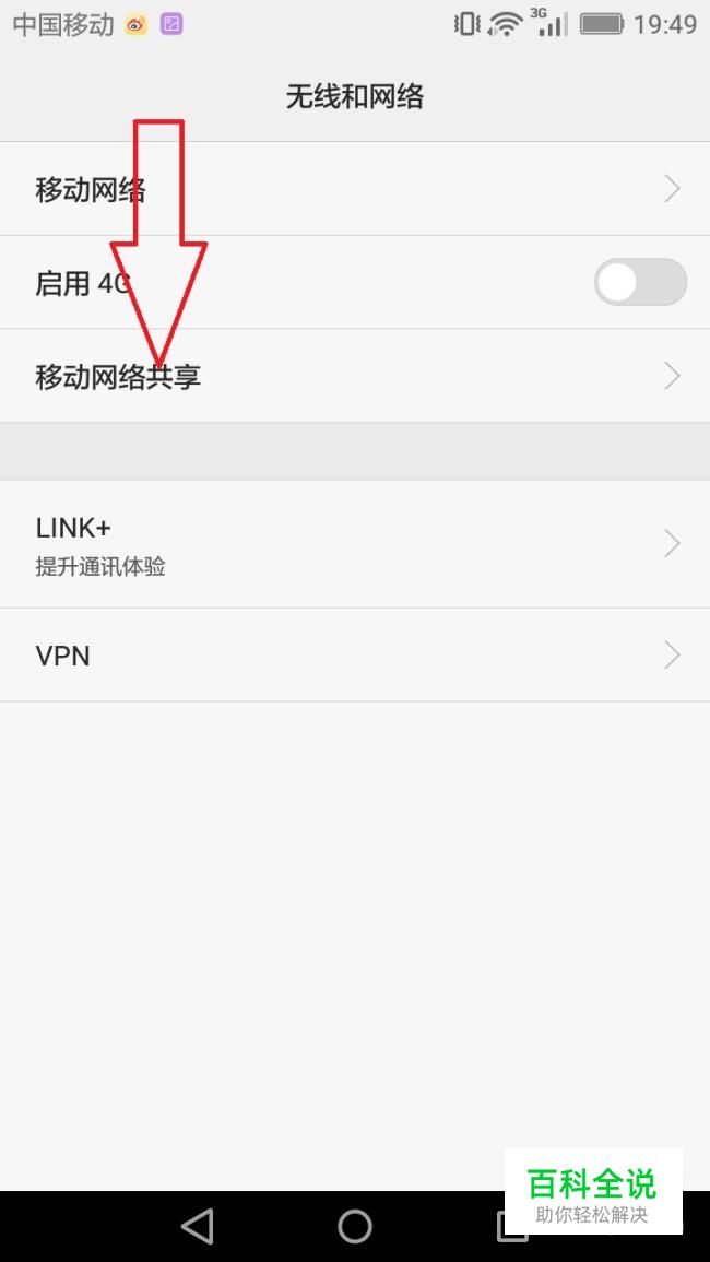 点击移动网络共享。