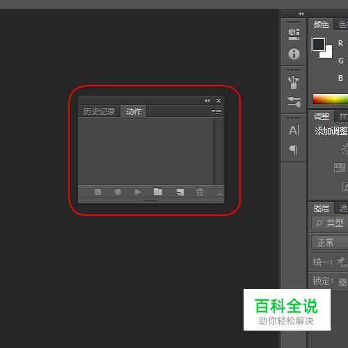 动作面板一般出现在软件的右侧。如图所示。