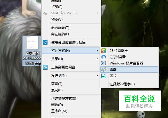 鼠标右键单击要修改的图片,选择打开方式为“画图”。