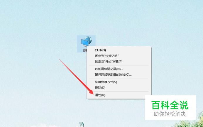 在桌面上找到网络图标,右键点击图标,在弹出的界面最下方找到“属性”,左键单击进入。