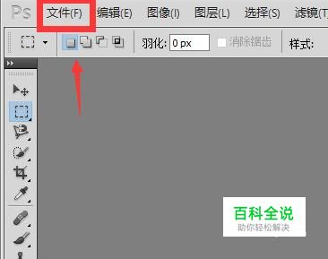 打开电脑中的ps软件,打开以后如下图所示。Ps有比较多的版本,选择一个经典版的会比较好。在ps软件界面上方有一排工具栏,有文件。编辑图层等等的一些工具。点击第一个文件选项。