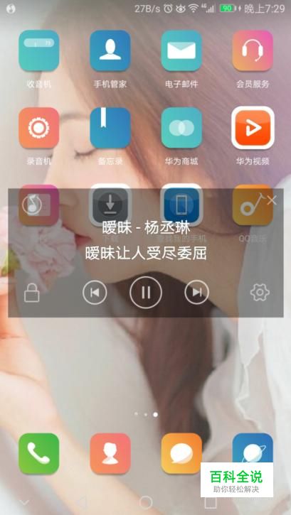 接着在我们的手机桌面就可以看到桌面歌词啦,如图所示。