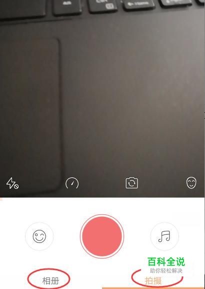 进入了拍摄视频的页面,在这里可以通过我们的手机手动拍摄视频或照片,也可以通过相册上传,另外,如果相册同时上传几张图片的话可以选择合成视频。 要是想要换别的镜头拍摄,可以点击一下下方的小黄色拍摄图标,这样就停止拍摄。 拍摄完视频后,再点击旁边的箭头这一项。