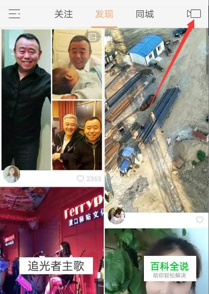 打开手机上的快手软件进入了快手的页面后,在“发现”首页点击右上角的摄像机图标。