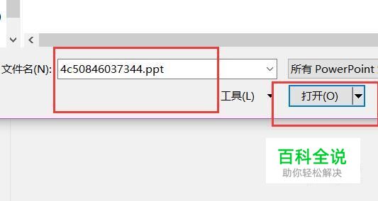 打开ppt软件,单击文件选项卡,在文件功能区,单击打开,在打开页面单击浏览,在打开窗口,文件名,添加不能正常修改的目标文件,单击打开。