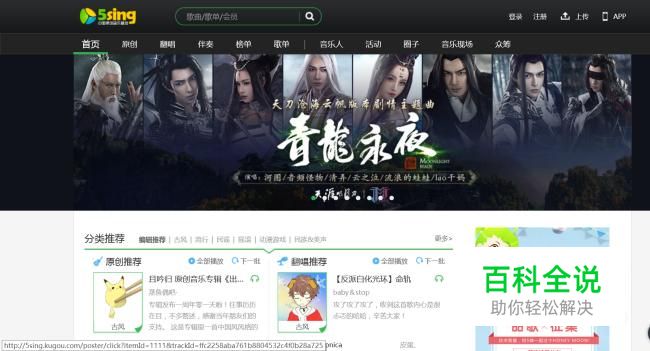 以前的酷狗版本是有5sing原创音乐基地的按钮,可以很方便地供网友上传原创歌曲。