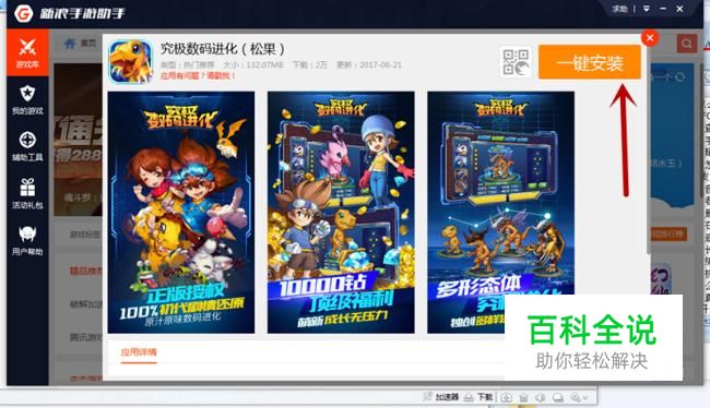 在手游详情信息中,点击“一键安装”