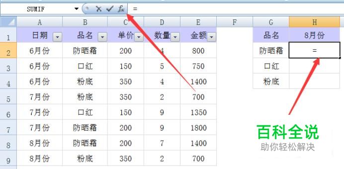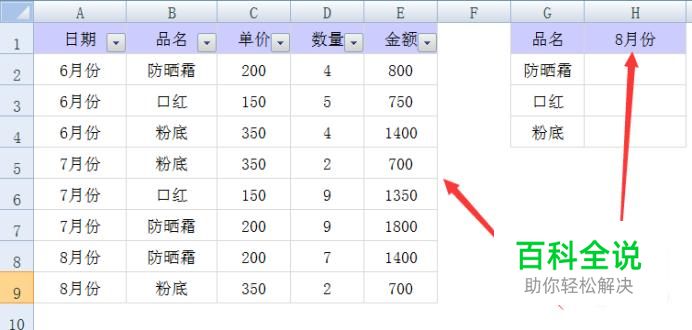 做数据统计时,常常需要按月份对某一产品的销售额进行求和,这样就会涉及两个条件,一个是月份,一个是品名,下面教大家:对满足多个条件的数据求和。