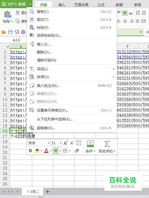 接着就是用鼠标右键单击有文字的单元格出现如图所示的选项