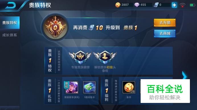 贵族1需要消费1元获得,每周可以获得128金币及定量钻石与铭文碎片。