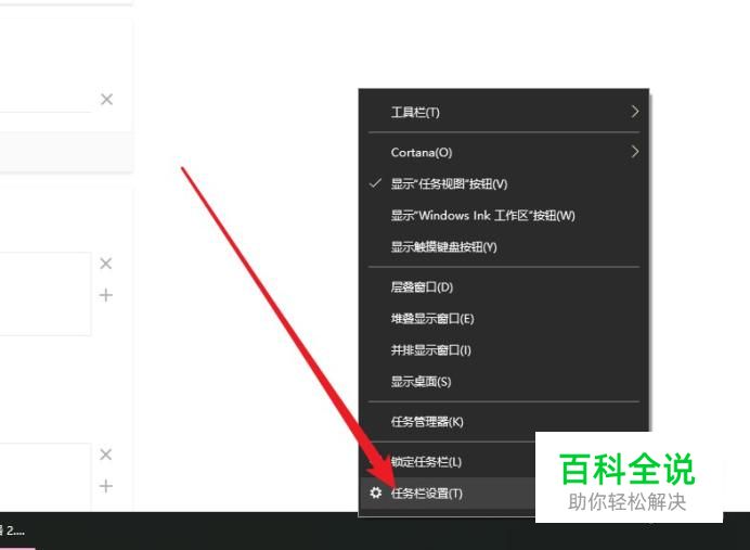 在任务栏上点击鼠标右键,在面板上选择任务栏设置。