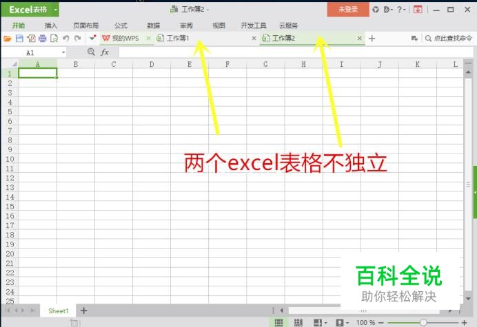 首先我们可以看到excel软件中有两个工作簿,但是它是合并的(不独立)