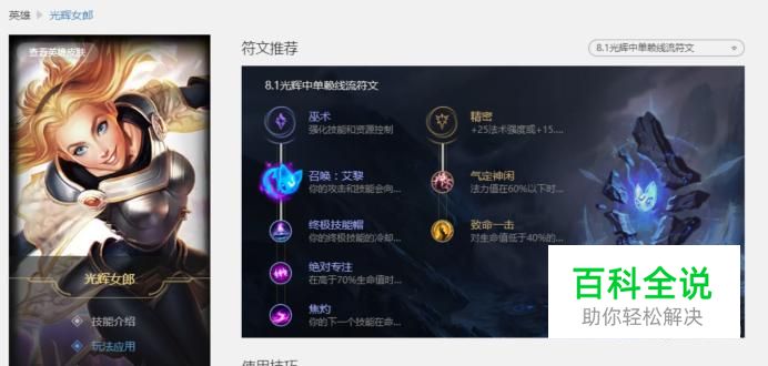 英雄联盟S8赛季光辉女郎天赋符文出装攻略?