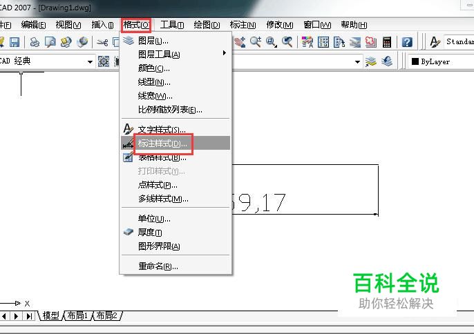 接下来我们打开格式工具栏中的“标注样式”,如图所示。