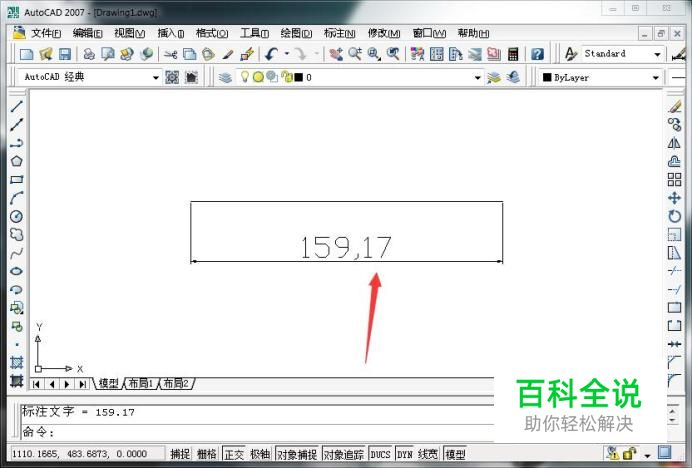 对直线进行尺寸标注,这时我们就会看到尺寸箭头很小,如图所示。