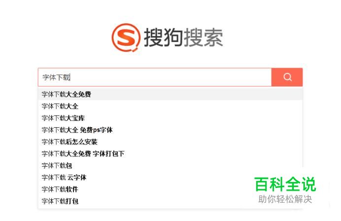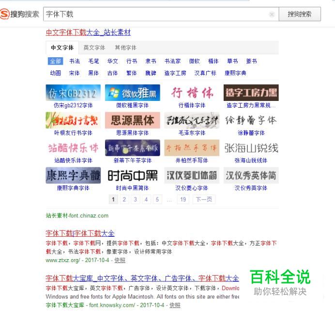 首先打开搜狗搜索的首页,在搜索栏目中搜索字体下载,点击后面的搜索按钮,新跳出的页面中就会有一些和字体有关的页面连接,选择一个点击进去。