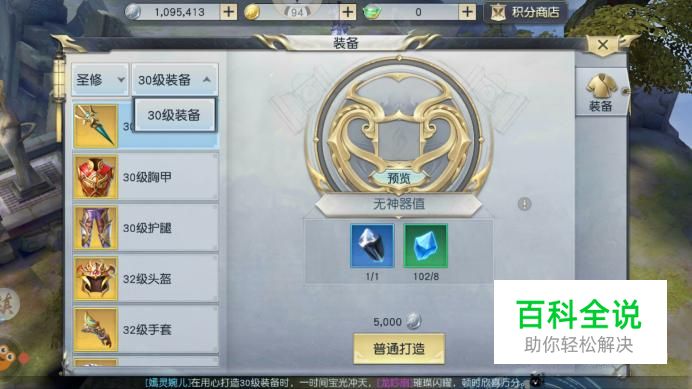 打造装备能够获得相应的神器值,神器值满后打造必出紫色装备,准备好材料后点击“普通打造”