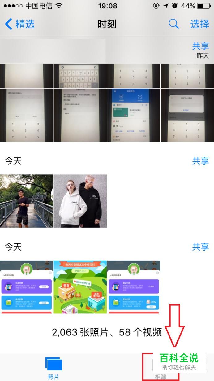 进入照片页面后,点击右下角的“相薄”。