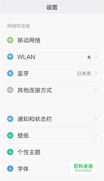 打开了设置页面,在该页面可以对手机做各方面的设置。