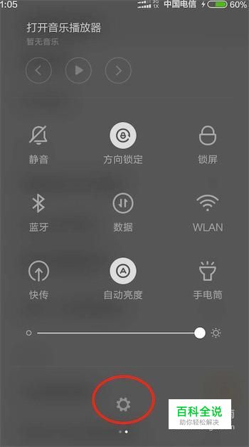 首先,打开手机的下拉屏幕,点击设置图标。