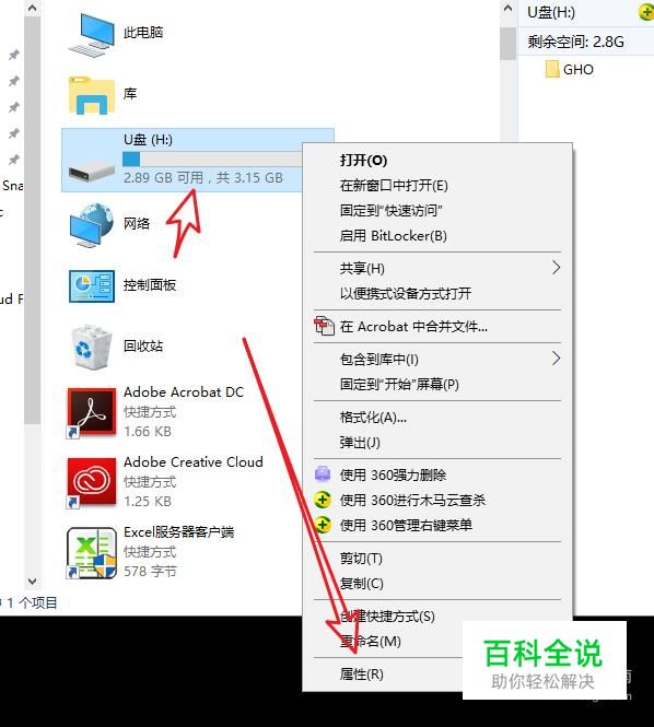 windows+E,调出资源管理器,找到U盘,鼠标右击,打开属性