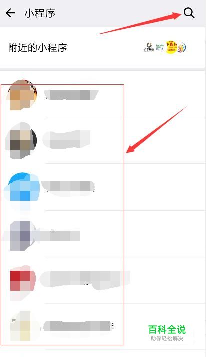 在列表中可以看到添加过的小程序游戏,选择右上角搜索按钮;