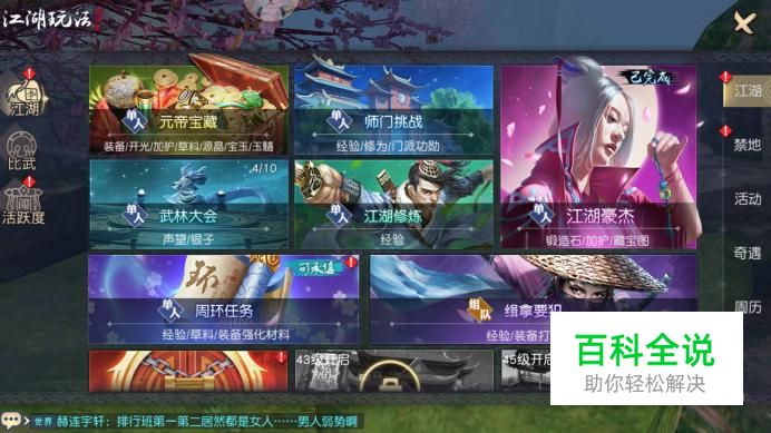 进入游戏主界面,在上方菜单中选择“江湖”