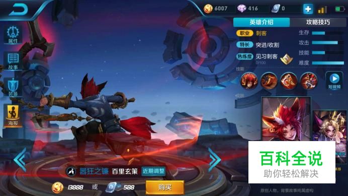 百里玄策自2017年八月份上线后,一直广受好评,13888金币或288点券即可购买,属于控制型刺客,师傅是兰陵王; 主加2技能,有大点大;