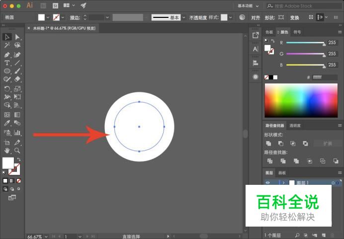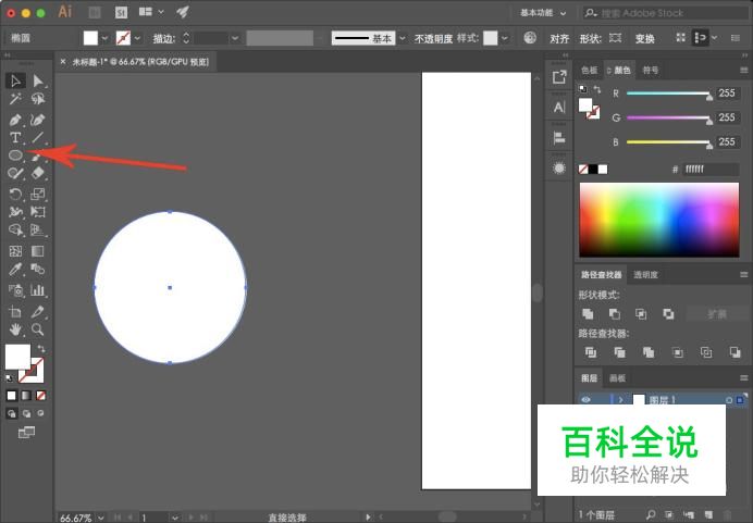 进入AI主界面,在工具栏中选择“椭圆形”,按住shift绘制一个正圆。