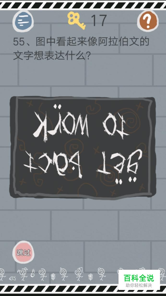 第55至57关。 55.把手机反过来看,可以看到“get to back”的英文单词哦。然后在点击这些字母,就过关了。 56.玩家们把手机旋转180度,也就是把手机倒过来,这个老太太就变成年轻的美女啦。 57.指纹锁?玩家们千万不要用自己的手指去点哦,移动右下角的手到指纹锁处,就可以了。