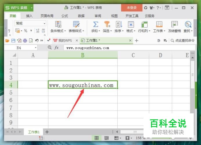 进入表格主界面后,在单元格中输入文本网址“www.sougouzhinan.com”,如图所示: