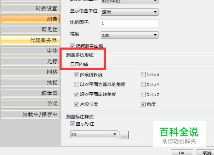 之后,界面中会弹出一个选项设置面板,选择左侧的测量,在右侧你就可以看到“测量多边形”,在其中可以选择需要显示的值,选择一个需要显示的值就可以了。
