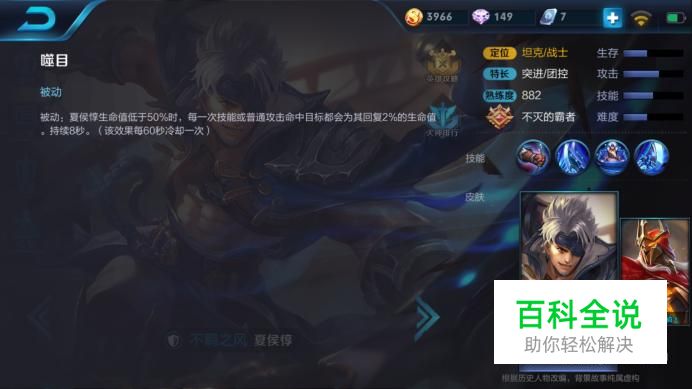 先给大家介绍一下夏侯惇的技能,让大家更了解他。他的被动技能可以说是反杀的神技,普攻和技能的释放都会给自己回复血量,这也可以让夏侯惇更好的赖线。