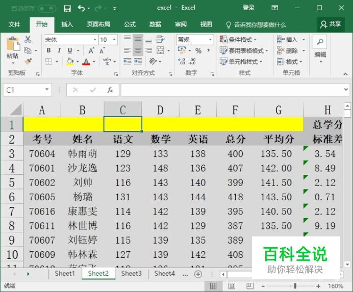 这里小编制作了一个成绩表,以在成绩表中找到14这个数据单元格作为例子。