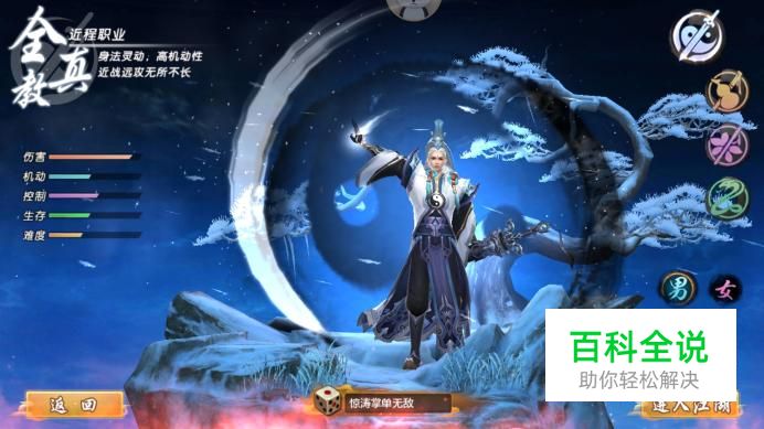 进入角色创建界面,有4个职业可供玩家选择,选择完成后输入角色名,点击“进入江湖”