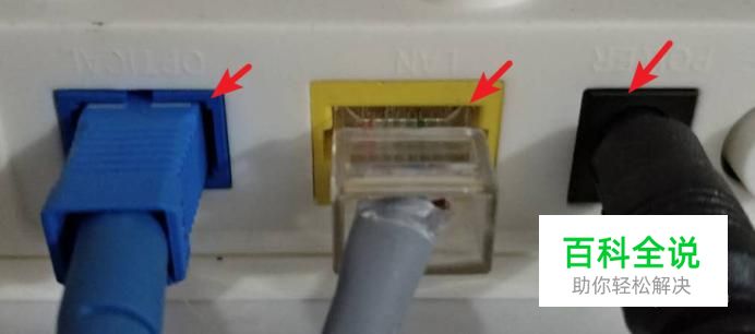 首先看下光猫的接线,从图中看,从左到右分别是光纤线,网线,和光猫的电源线。