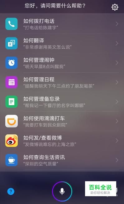 看完这些,基本就知道智能语音是怎么回事了,使用我们的口令前,先点一下屏幕下方的麦克风标志,开始录入语音。