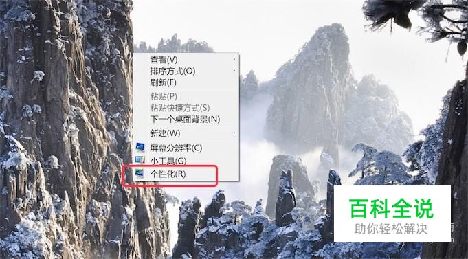 右键点击桌面,在弹出的菜单上点击‘个性化’