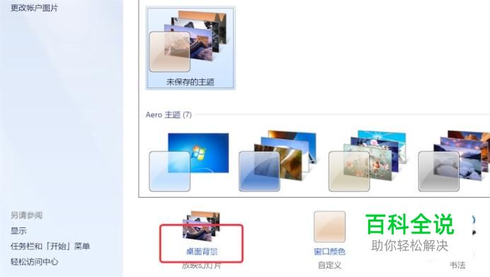 弹出个性化设置窗口,点击上面的‘桌面背景’