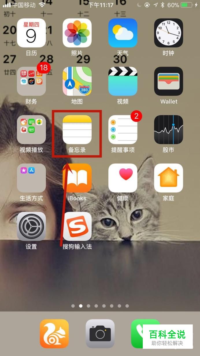 首先在手机桌面上找到“备忘录”图标并点击它,如下图所示。